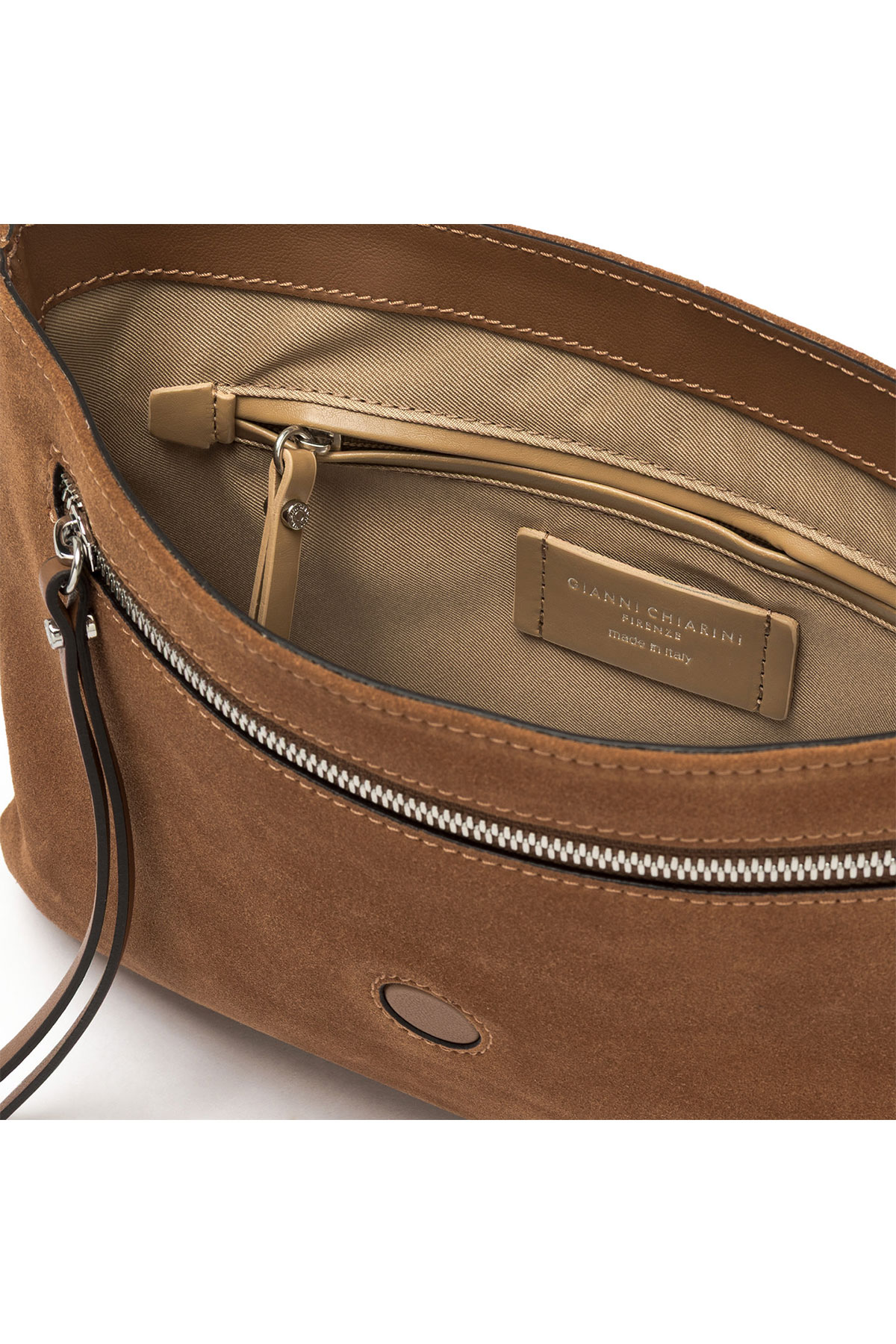 La Elisa Large è la versione ampliata e arricchita della linea Elisa firmata Gianni Chiarini Firenze: stessa anima Western, stesso carattere autentico, ma in una silhouette morbida e allungata che abbina capienza generosa a un design raffinato. Realizzata in pelle scamosciata color cuoio, il suo calore naturale si fa protagonista silenzioso di ogni look, dal casual quotidiano all'eleganza informale.