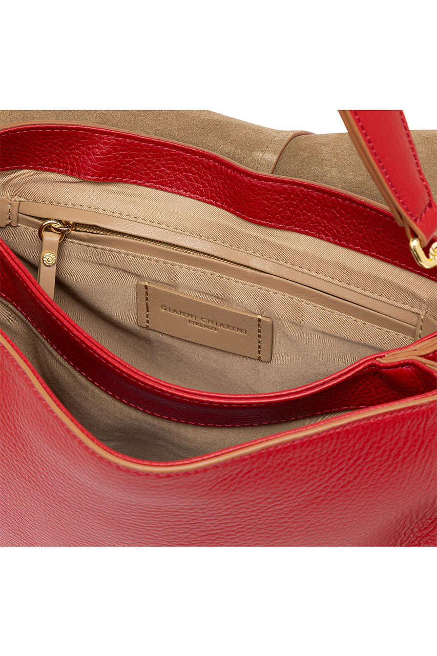 Borsa big in pelle martellata color cherry, dal design strutturato e dall’eleganza contemporanea. Dotata di tracolla regolabile per una doppia portabilità, offre praticità con doppio compartimento interno e tasca posteriore a scomparsa. Perfetta per uno stile chic e organizzato in ogni occasione.