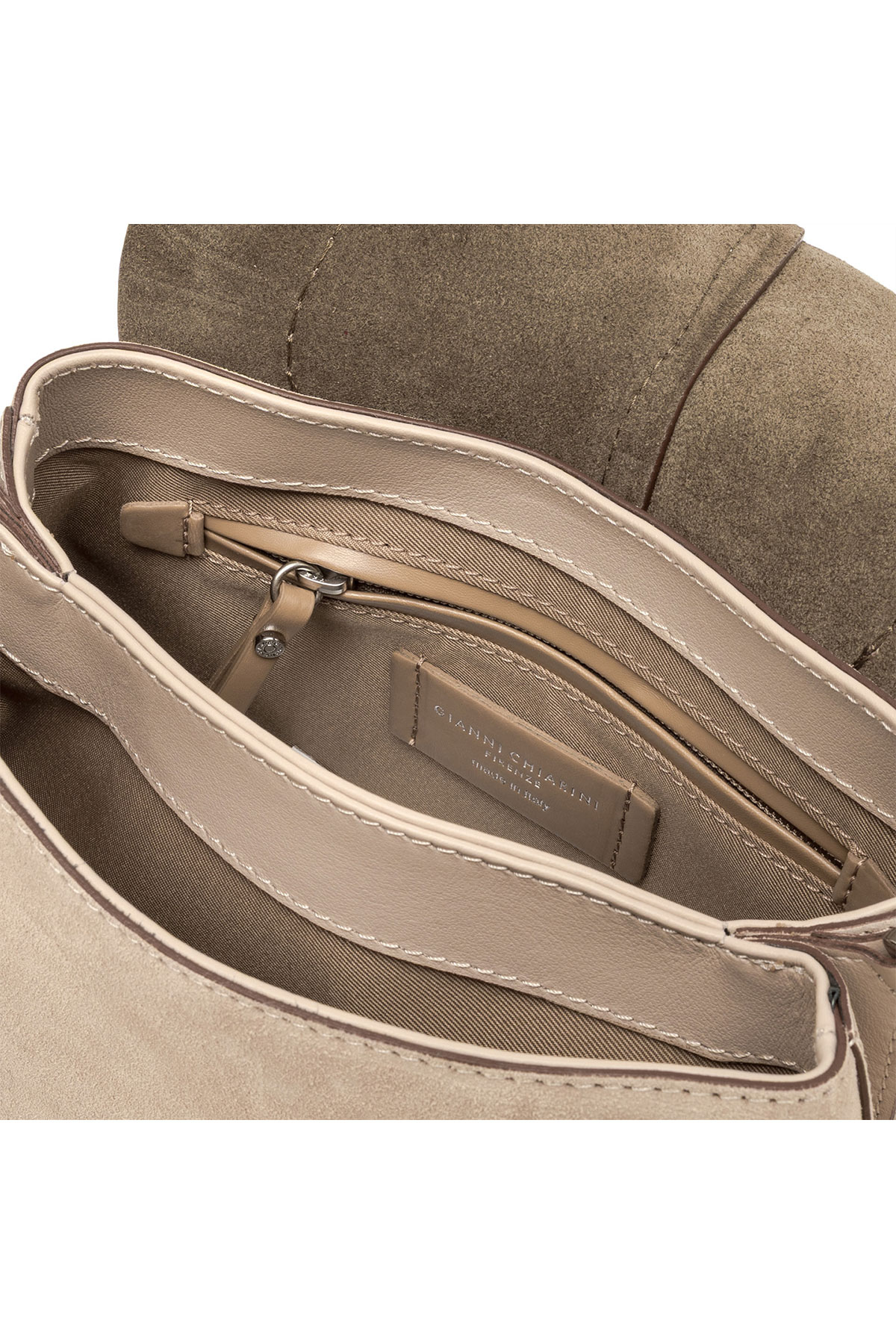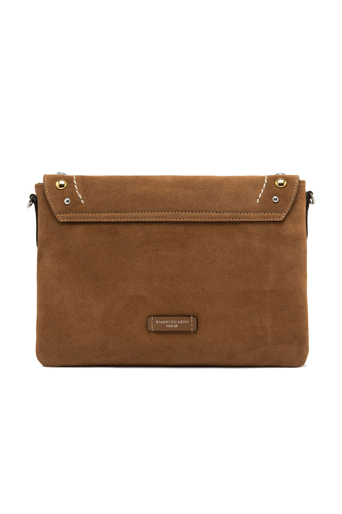 L’Helena Round è l’icona per eccellenza di Gianni Chiarini Firenze. Forma strutturata, anima Western e pelle scamosciata color nude per una borsa che racconta personalità e artigianalità made in Italy in ogni dettaglio.