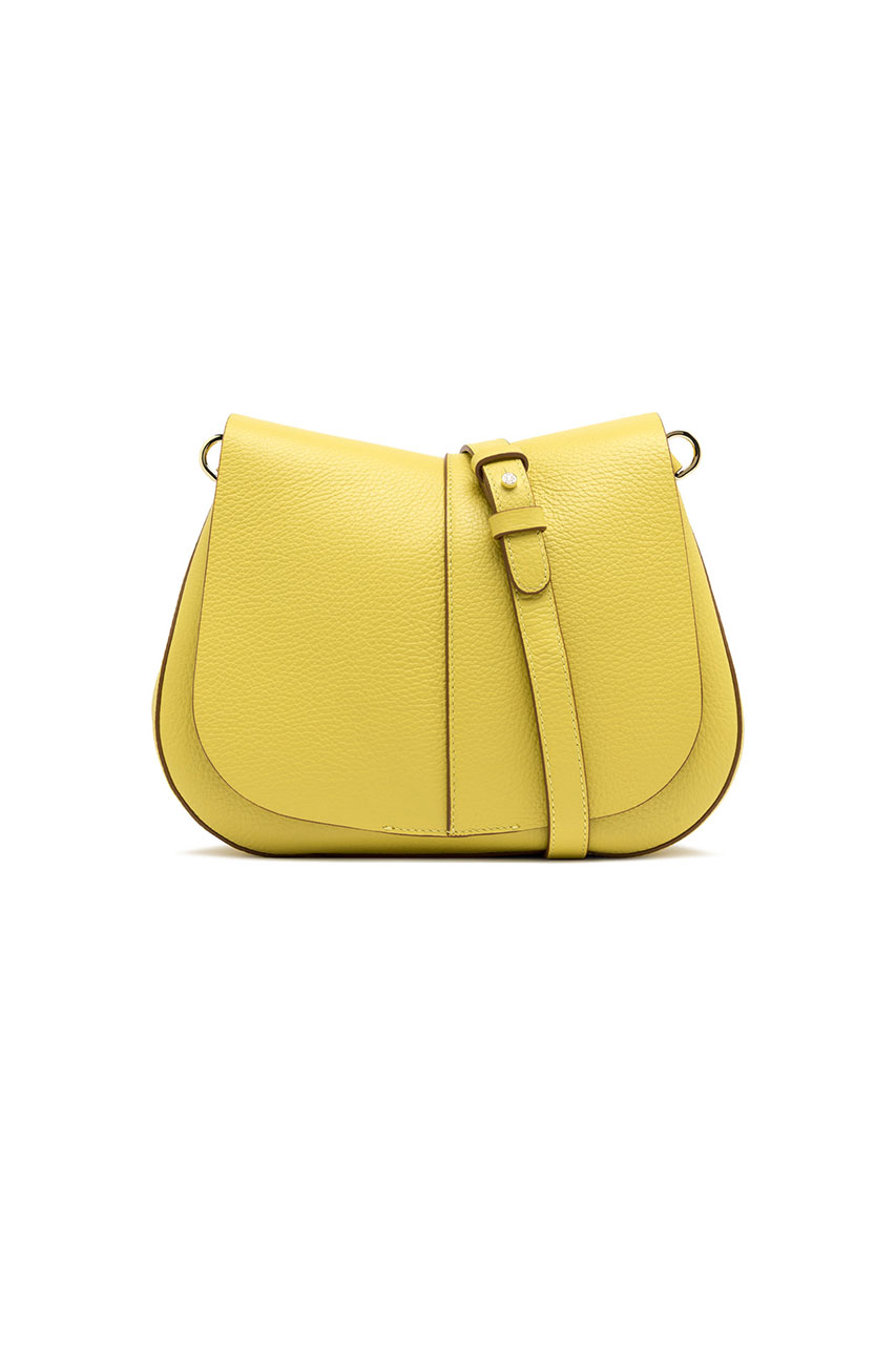 Borsa media in pelle martellata gialla, iconica e dal design strutturato, perfetta per uno stile contemporaneo e chic. Dotata di tracolla regolabile per una doppia portabilità, offre praticità con doppio compartimento interno e tasca posteriore a scomparsa. Un accessorio elegante e funzionale per ogni occasione.