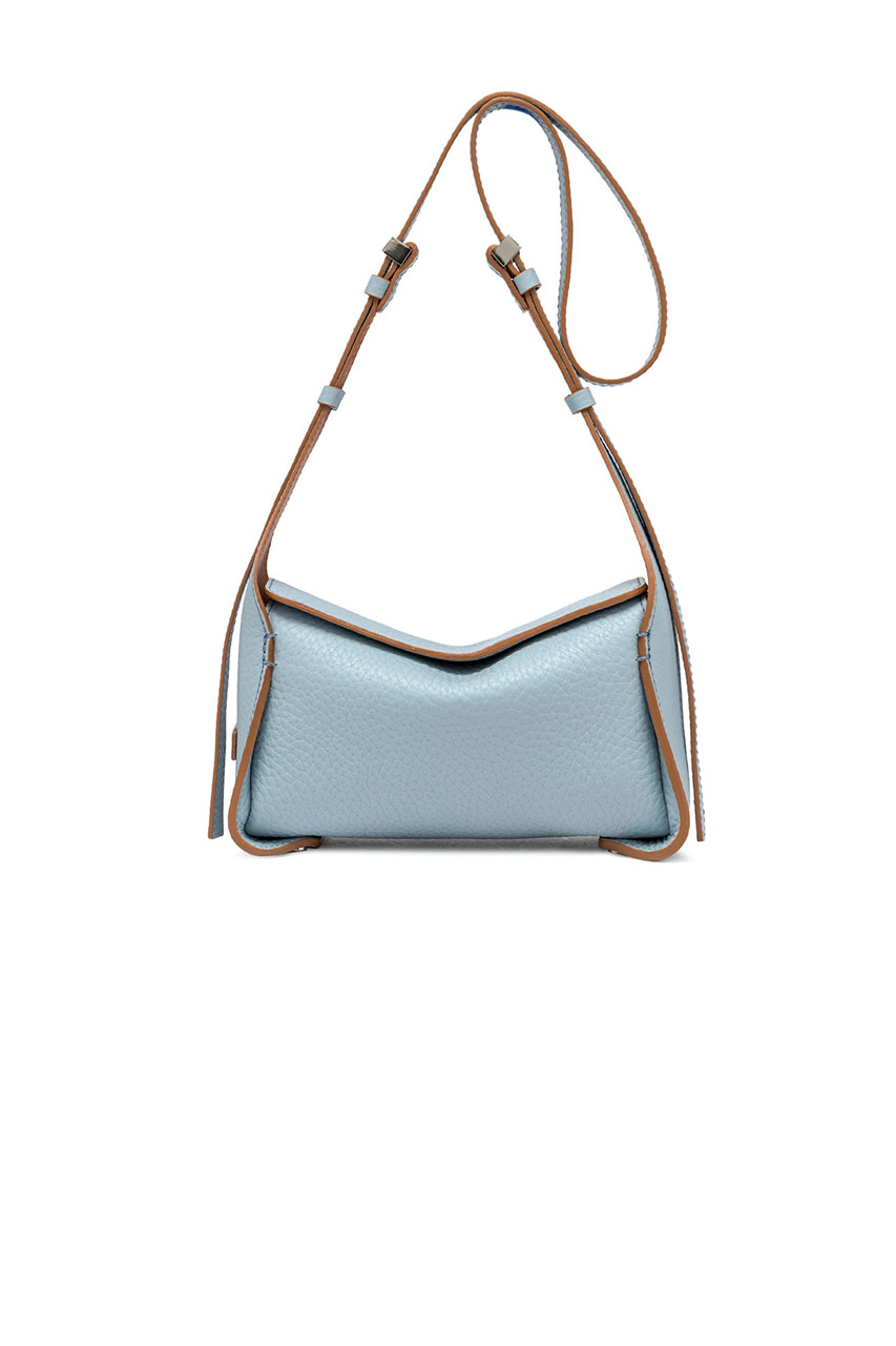 Borsa rettangolare realizzata in pelle double grana maxi celeste è caratterizzata da un'architettura a scatola e da una pratica chiusura con patta a calamita. Arricchita dall'iconico passante gemello rettangolare logato con cui è possibile regolare la tracolla per un utilizzo ancora più pratico e versatile.